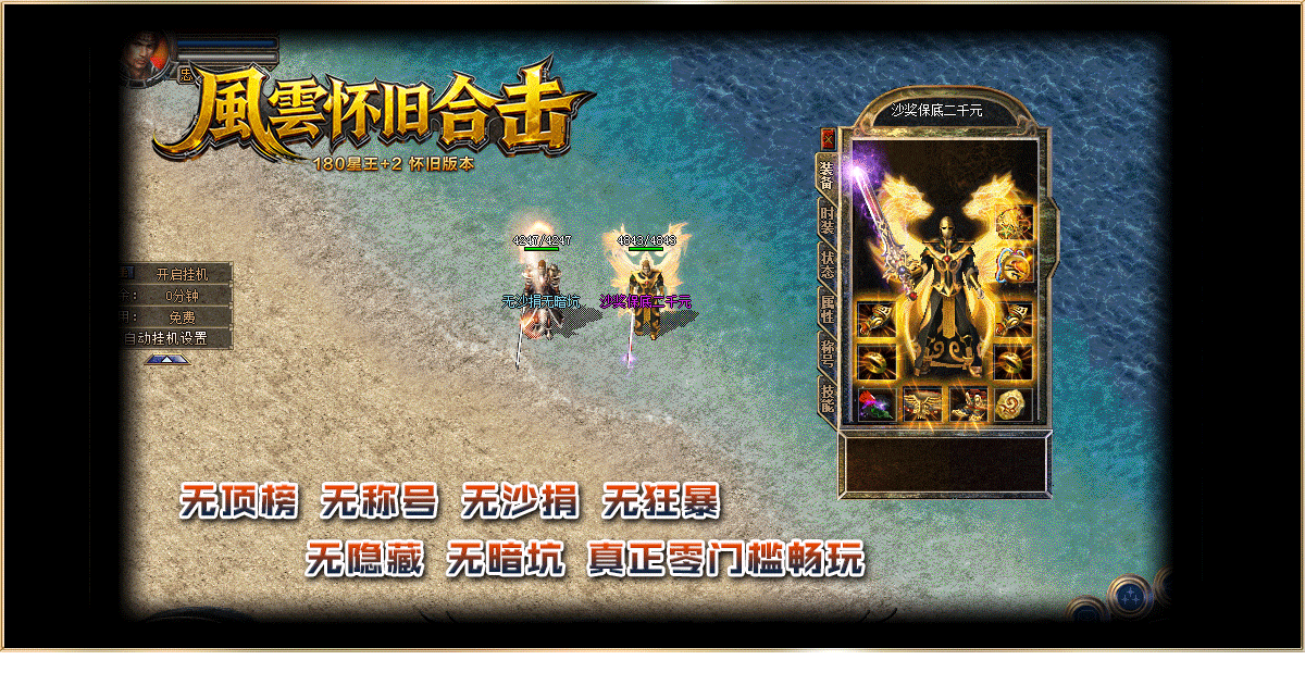 上线免费获得,自动回收,自动拾取,免费挂机,专为散人设计!